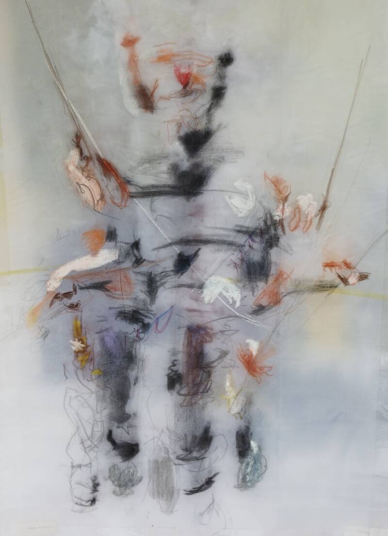 acryl en houtskool op papier,80/70, 2025.